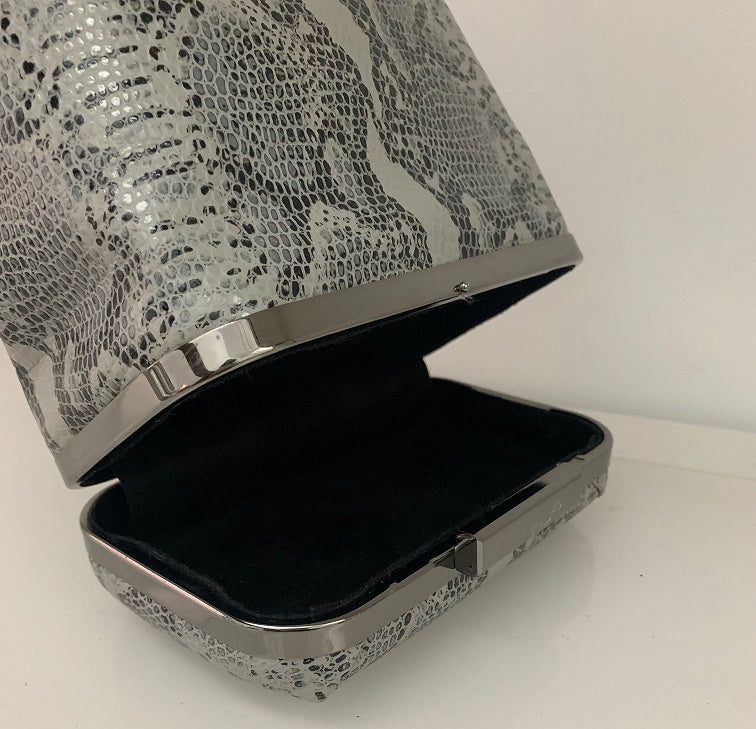 at the bottom clasp clutch compartment.The snake chain can be adjusted
