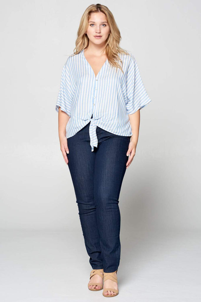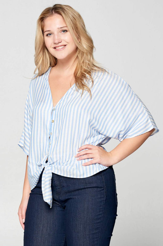 STRIPED FRONT TIE BUTTON DOWN TOP - PLUS SIZE