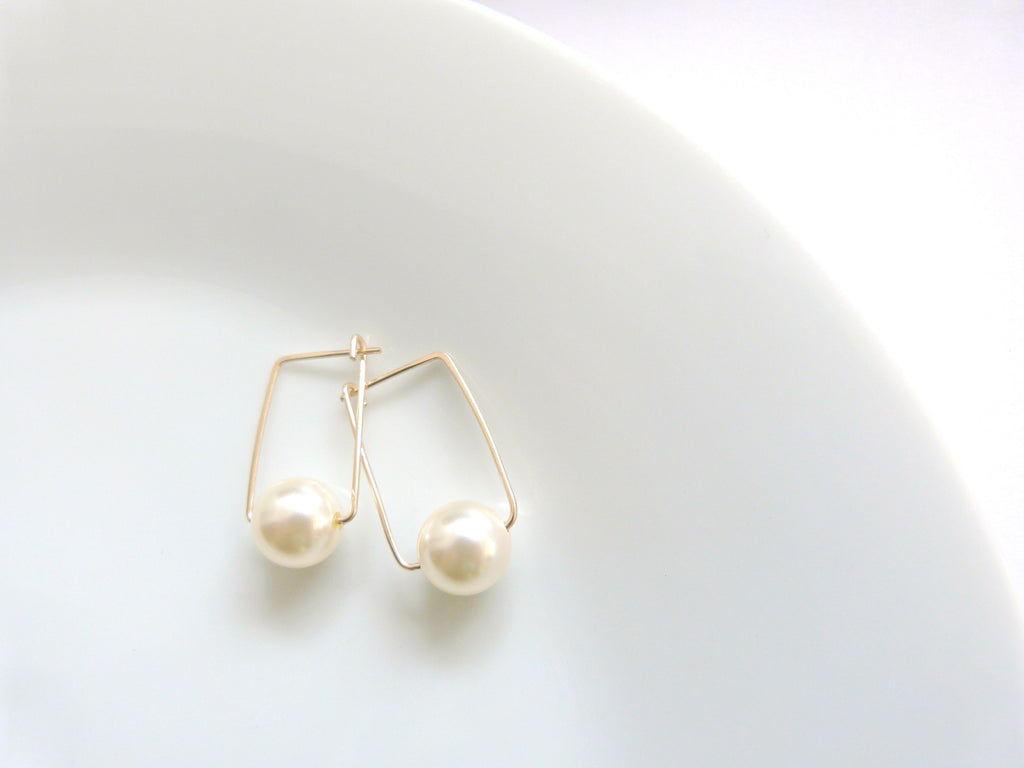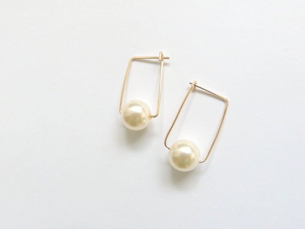 Pearl Square Hoop Earrings