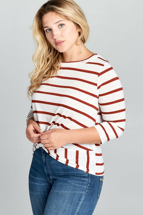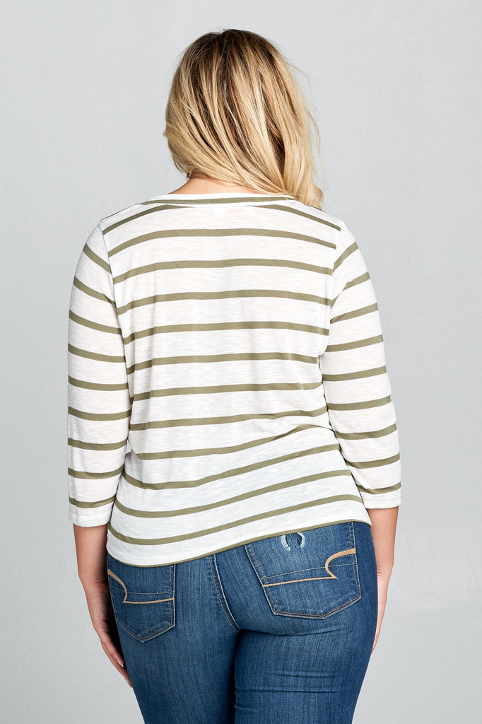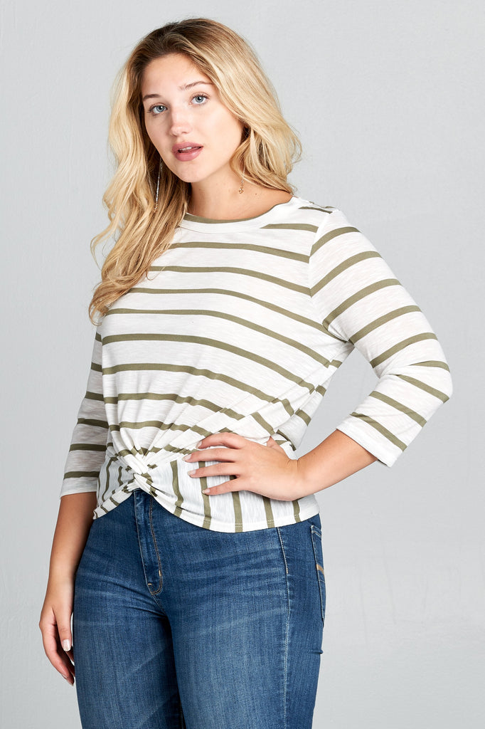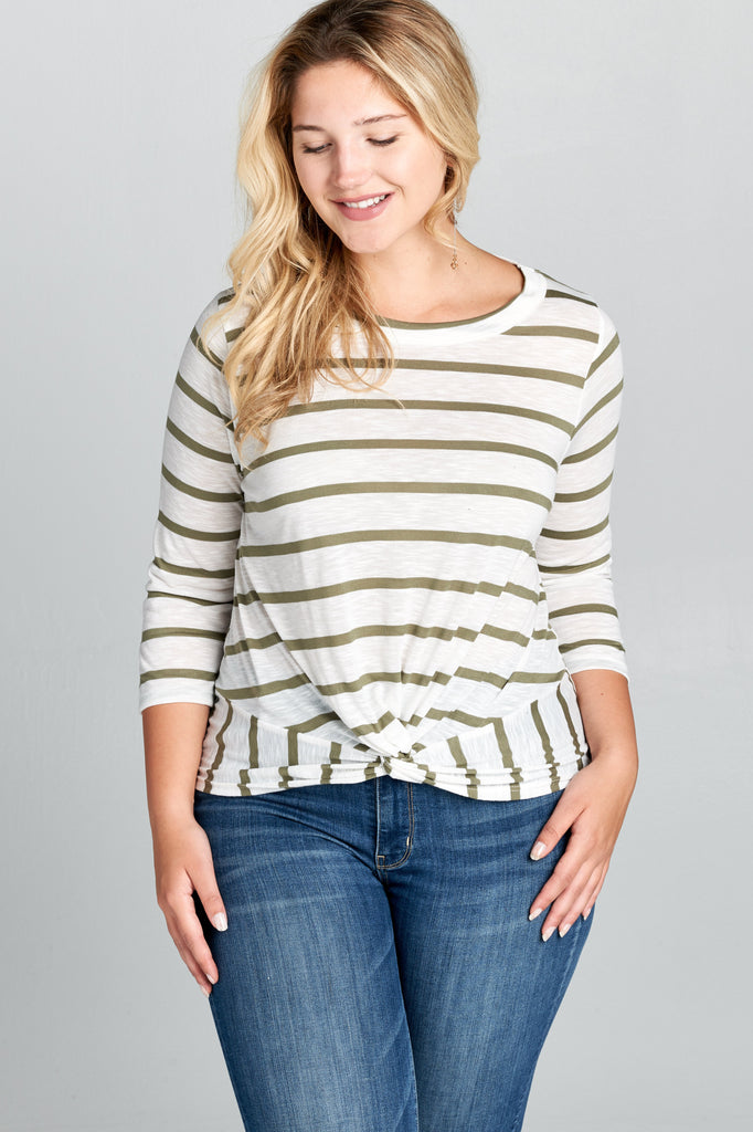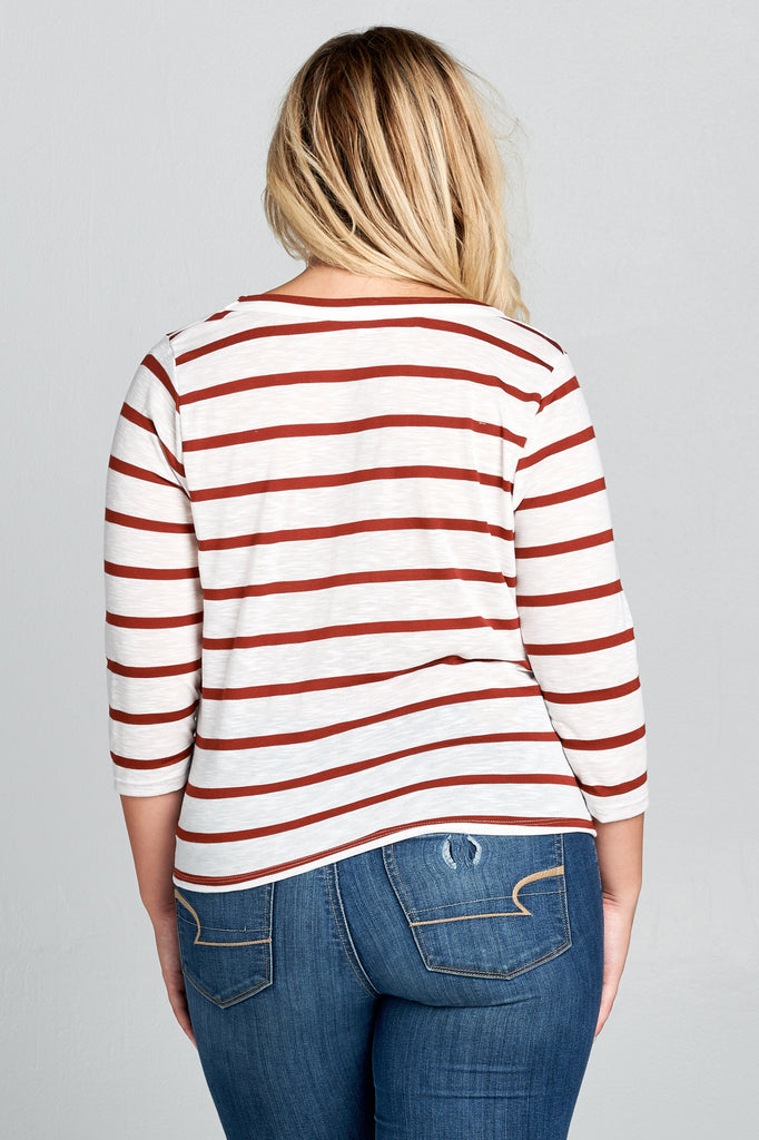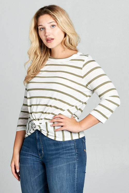 Plus Size - Striped 3/4 Sleeve Top with Knot